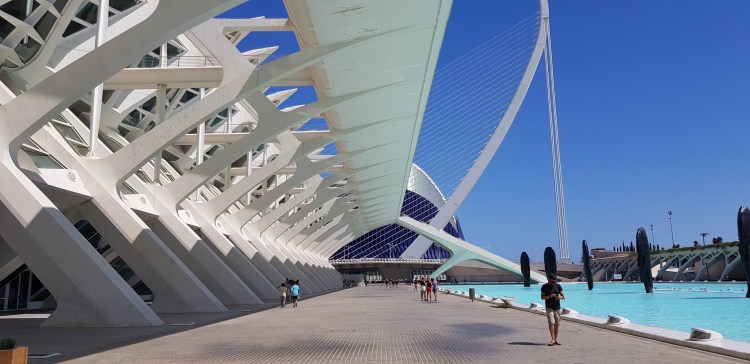 3ième jour, on se bouge les fesses et on s’active pour la plus grosse journée de mon trip. Direction La cité des arts et des sciences. First, méga claque quand tu arrives devant ces bâtiments qui sont si beaux! J’en étais émue tellement ils sont impressionnants! Calatrava est définitivement un architecte digne de ce nom.